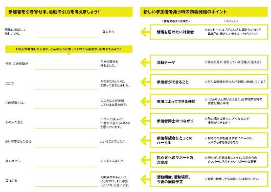活動レベルアップ・ワークシート例「参加者を引き寄せる引力を考えよう」